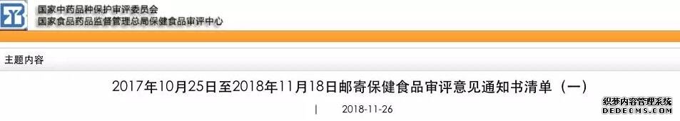 中保委官網(wǎng)統(tǒng)計公布了從2017年10月25日至2018年11月18日已郵寄保健食品審評意見通知書清單,共計3903個。