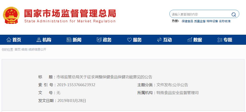 市場(chǎng)監(jiān)管總局關(guān)于征求調(diào)整保健食品保健功能意