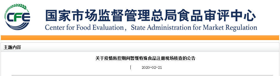 關(guān)于疫情防控期間暫緩特殊食品注冊現(xiàn)場核查的公告